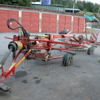 K nahrabování sena využíváme traktory CASE 135 MXU, CASE 110 JXU s bočním shrnovačem značky TA 9171 S-EVO. Je možno využít i středový shrnovač značky PÖTTINGER TOP 762C.