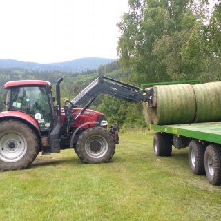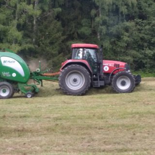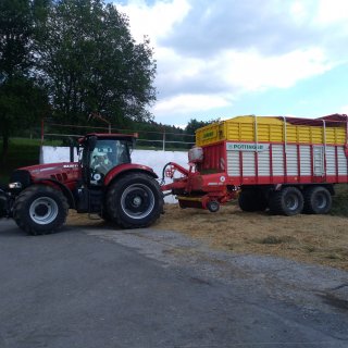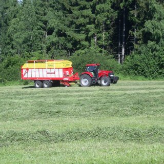Nabízíme vám také svoz sklizené píce z luk. Volnou píci svážíme traktorem CASE 240 CVX PUMA a vozem PÖTTINGER JUMBO 6610. Hotové balíky svážíme traktory CASE 140 MXU nebo CASE 175 CVX s vozem na balíky PRONAR.