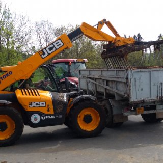 Vlastníme teleskopický manipulátor JCB 541–70 AGRI PLUS, který je možno využít k nejrůznějším účelům. Nakládání materiálu, balíků, manipulace s paletami, atd.