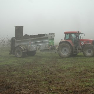 K rozmetání hnoje používáme traktor CASE 175 CVX nebo CASE 240 CVX PUMA a rozmetadlo JOSKIN Siroko S5513/13 V.